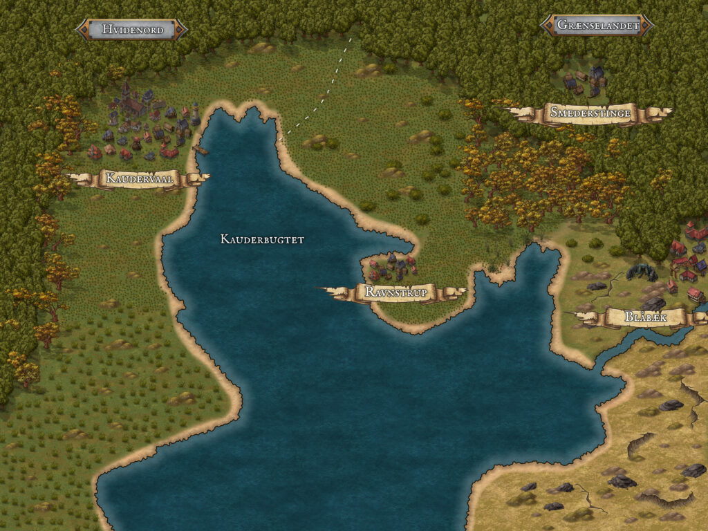 Blåbæk ligger i et større landområde mellem Khanatets kolonier mod sydøst og Hvidenords mod vest, der kaldes grænselandet. Det er territorier, som kolonimagterne endnu ikke har gjort krav på, og som er hjemsted for flere mindre bosættelser og gårde, samt de tre større byer Blåbæk, Ravnstrup og Smederstinge. Ravnstrup er en havneby, der tjener penge på fiskeri og på at være en frihavn for samtlige kolonimagters skibe. Smederstinge ligger længere inde på kontinentet, og her udvinder man mere traditionelle naturressourcer som jernmalm. Livet i grænselandet er hårdt og meget af området er stadig vild og utæmmet natur.